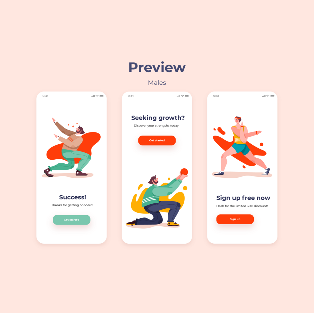 6 energetic illustration for your website, mobile, emails and blog articles. Catch your audience's attention with this set of positive and vibrant illustration!