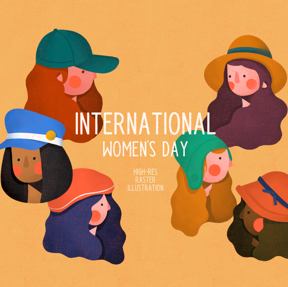 8 diverse and inclusive women with hat illustration to celebrate International Women's Day!